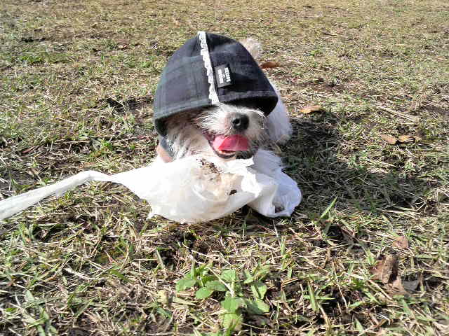 ビニールをよこせと吠える妹。