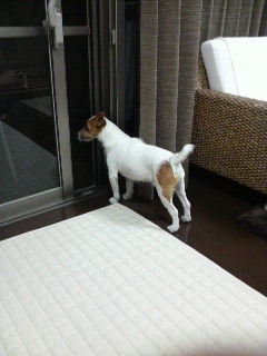 ベランダにいるお客様を見張ってます。